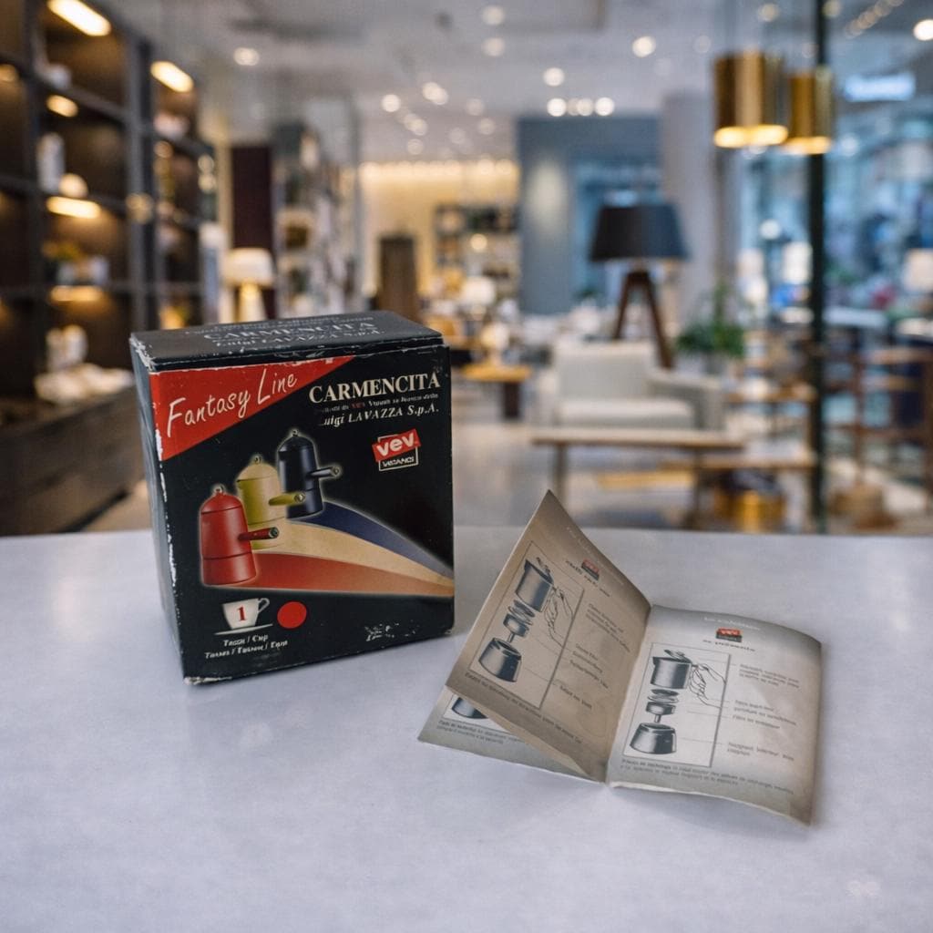 The Carmencita is one of the most recognizable Italian coffee makers of the 20th century. Designed by Marco Zanuso for Lavazza, it became iconic thanks to its distinctive cylindrical shape and its famous appearance in Italian advertising.