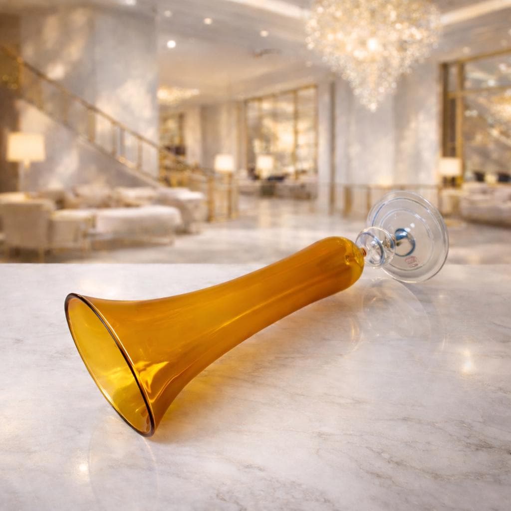 Vintage VetrArt Murano Trumpet Glass XL – Amber Hand Blown Glass – Italian Art Glass – Made in Italy – Murano Stemware